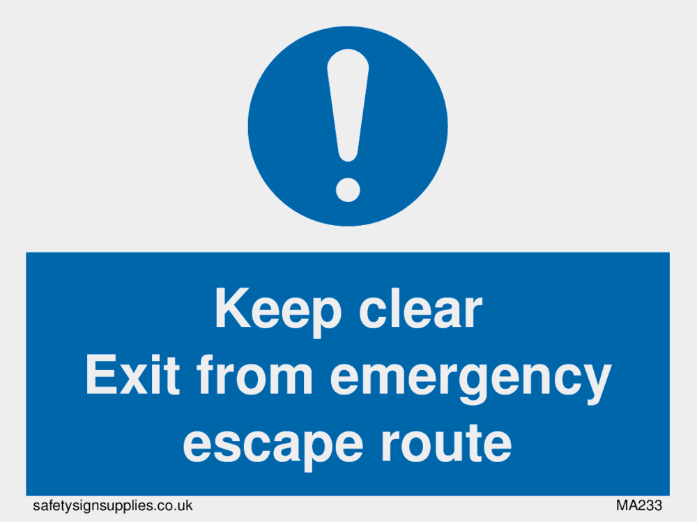 This sign contains a general Mandatory Exclamation Symbol - exclamation mark in white on blue circle background.