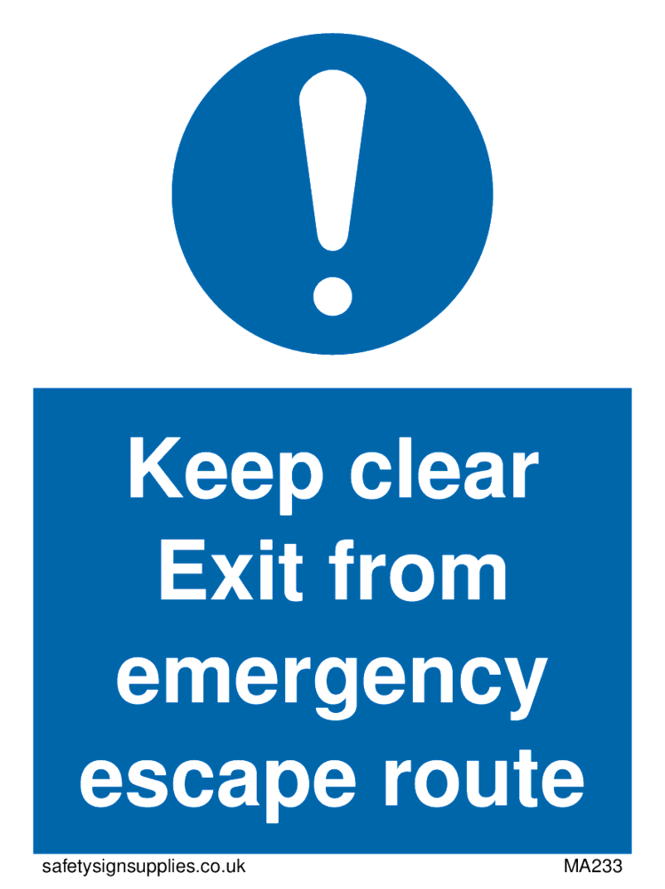 This sign contains a general Mandatory Exclamation Symbol - exclamation mark in white on blue circle background.