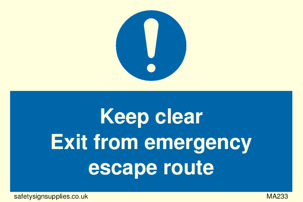 This sign contains a general Mandatory Exclamation Symbol - exclamation mark in white on blue circle background.