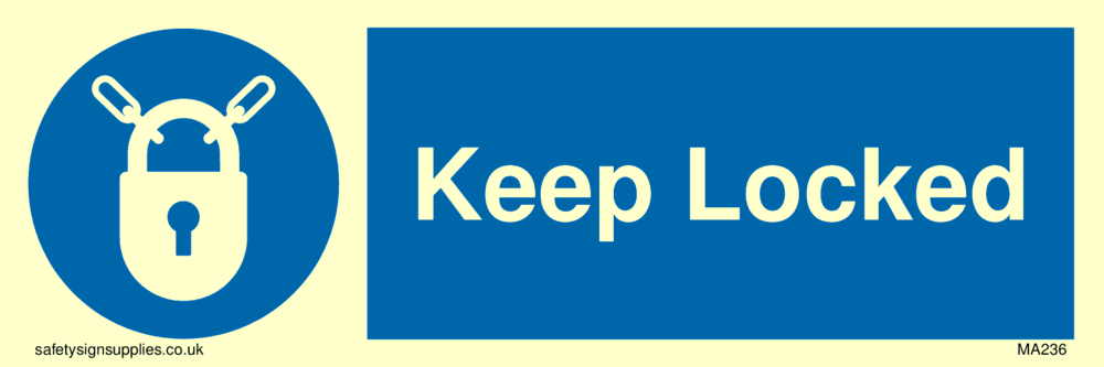 This sign contains a lock required symbol. Padlock in white within a blue circle.