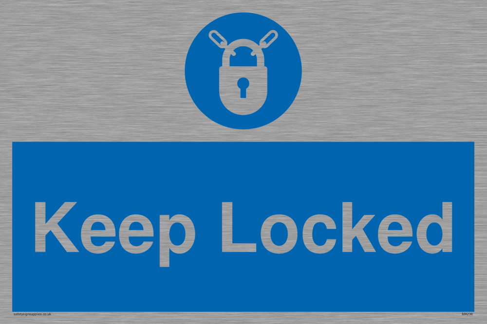 This sign contains a lock required symbol. Padlock in white within a blue circle. Suitable for fixing with screws. Suitable for hanging with a premium hanging kit.