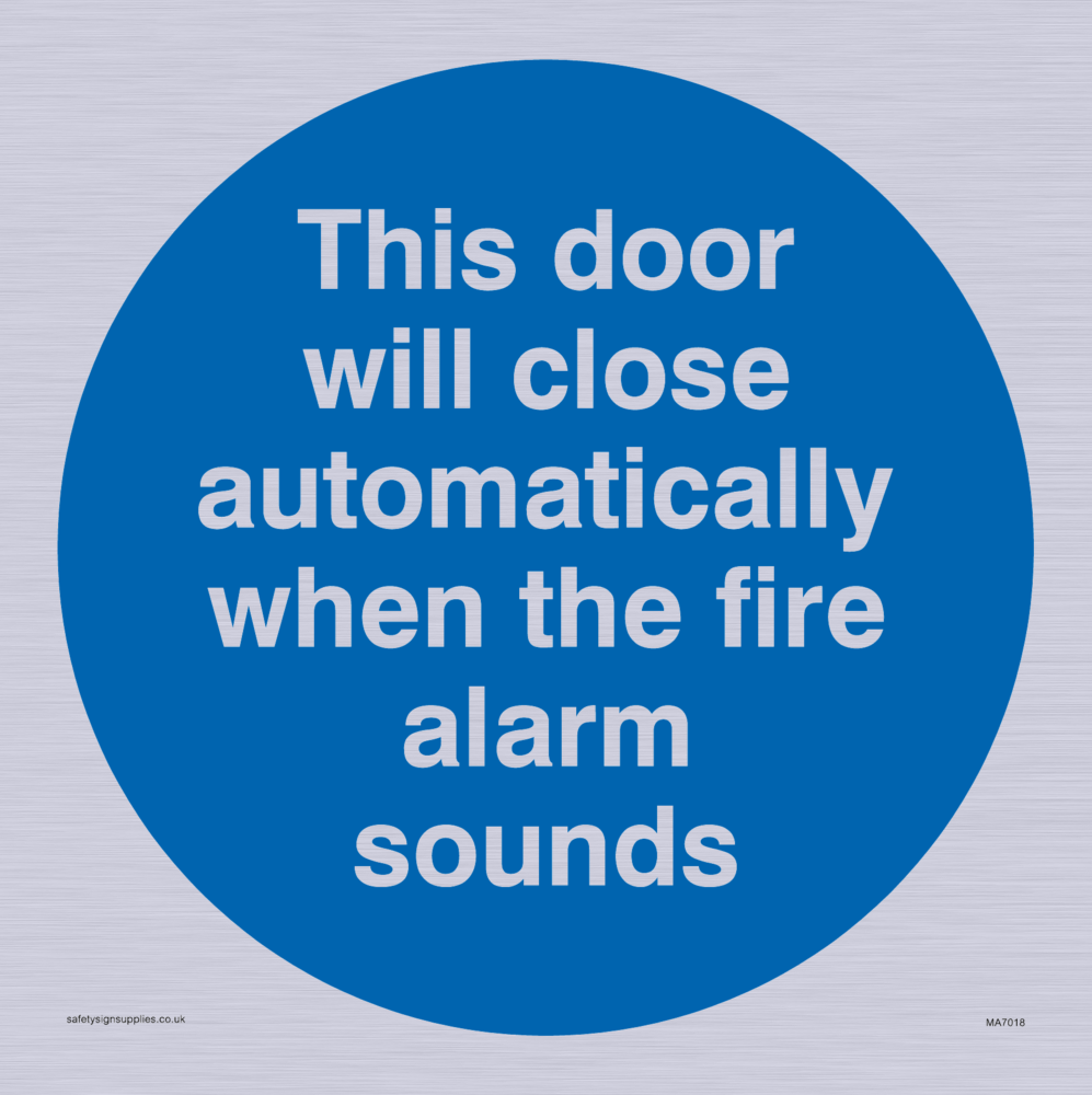 Sign Text: This door will close automatically when the fire alarm sounds