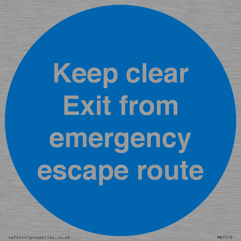 Sign Text: Keep clear Exit from emergency escape route