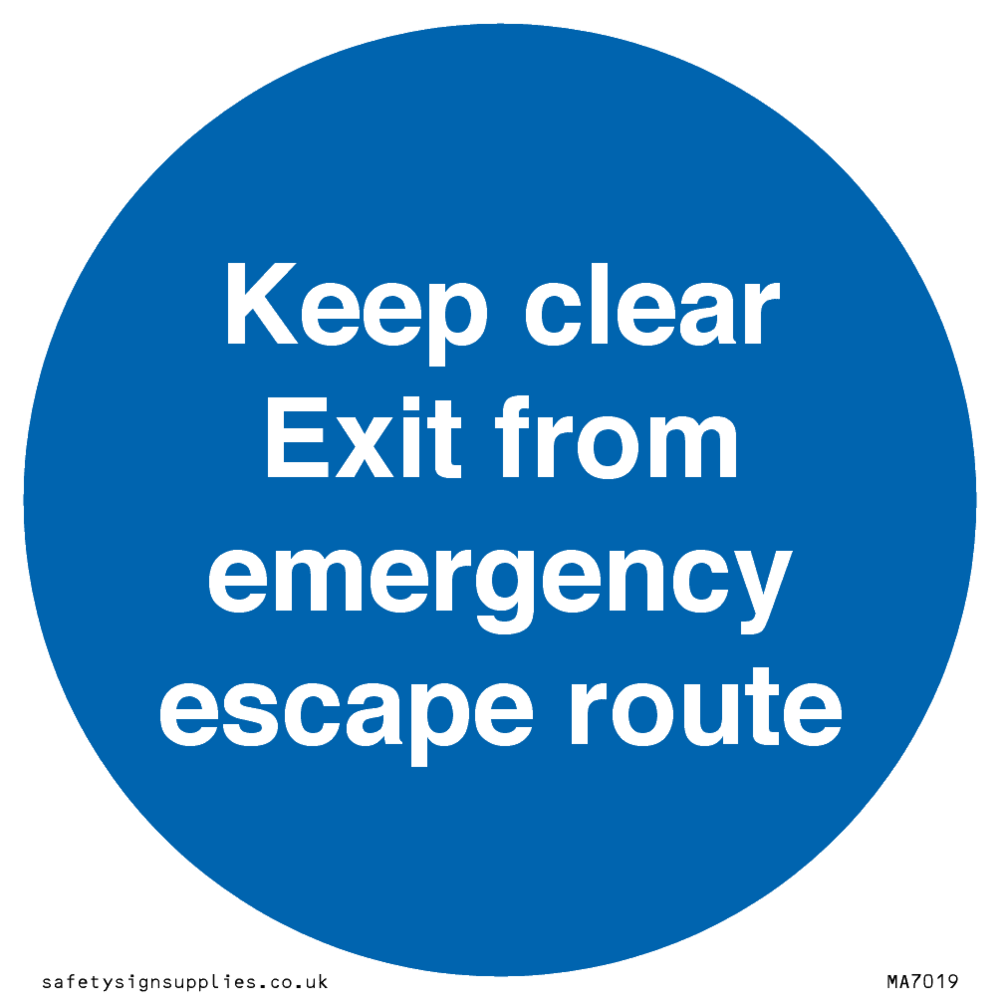 Sign Text: Keep clear Exit from emergency escape route