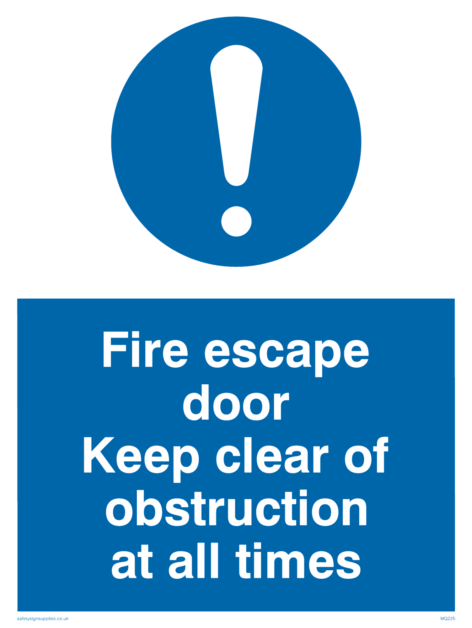 92/58 EEC signs are designed to meet the applicable European Community standard, normally relating to fire exit signs. Fire escape signs give information relating to fire escape locations or modes of use. Keep clear signs indicate an area of location that must be kept clear.