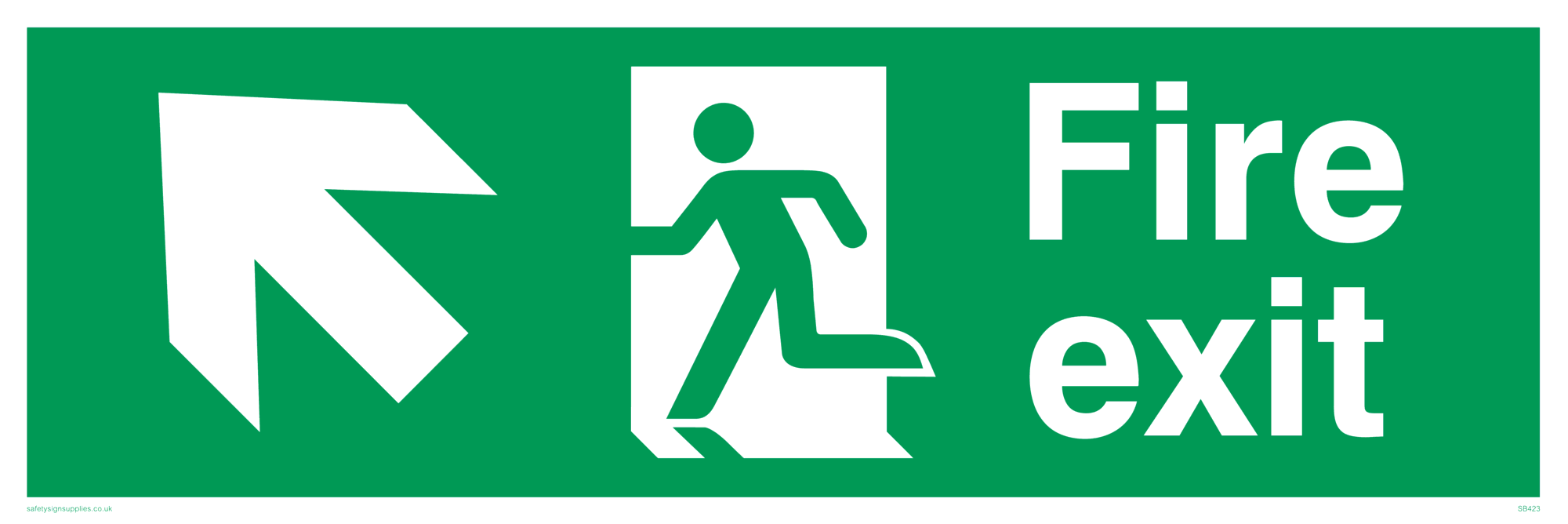 Directioal signs are used to indicate, usually with an arrow, the direction to take or the direction in which something is located. BS5499 signs are designed to meet the applicable British Standard 5499, normally relating to fire exit signs. Fire exit signs or Emergency exit signs indicate the direction of the exit in the event of a fire or emergency requiring evacuation of a building. This sign is large. Signs in this range are from our maximum choice range. Giving you the most choice of signs available in the UK.
