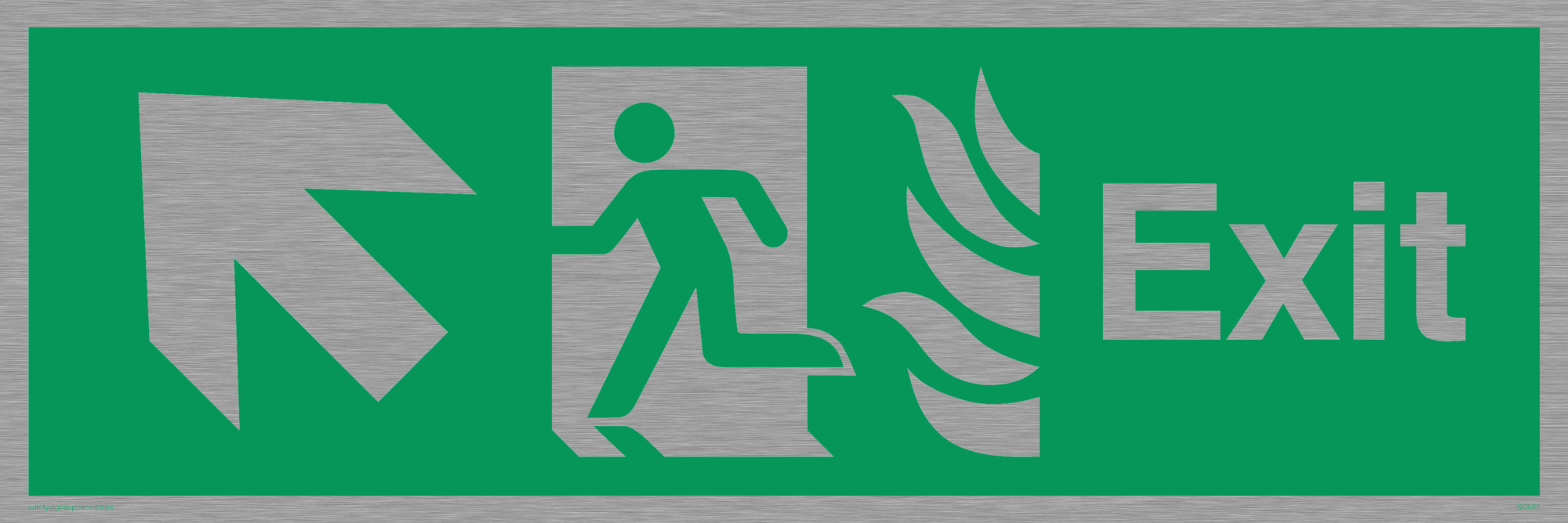 Directioal signs are used to indicate, usually with an arrow, the direction to take or the direction in which something is located. NHS fire exit signs are designed to meet the HTM65 Signs guide 2 for NHS estates. Fire exit signs or Emergency exit signs indicate the direction of the exit in the event of a fire or emergency requiring evacuation of a building. This sign is small.
