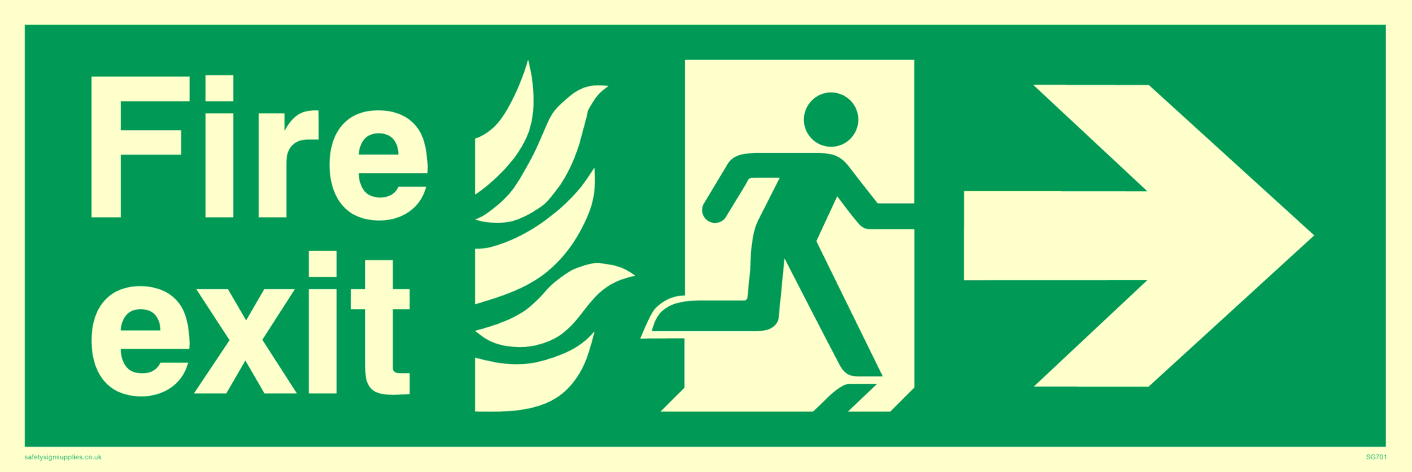 Fire exit signs or Emergency exit signs indicate the direction of the exit in the event of a fire or emergency requiring evacuation of a building. Directioal signs are used to indicate, usually with an arrow, the direction to take or the direction in which something is located. NHS fire exit signs are designed to meet the HTM65 Signs guide 2 for NHS estates.