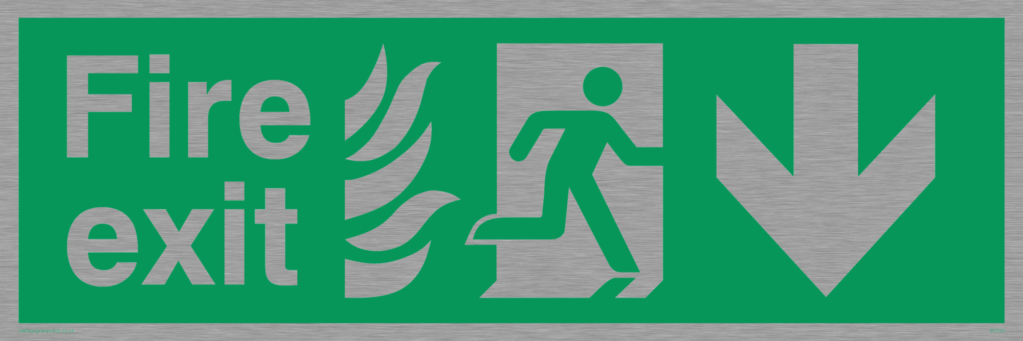 Directioal signs are used to indicate, usually with an arrow, the direction to take or the direction in which something is located. NHS fire exit signs are designed to meet the HTM65 Signs guide 2 for NHS estates. Fire exit signs or Emergency exit signs indicate the direction of the exit in the event of a fire or emergency requiring evacuation of a building. This sign is small.