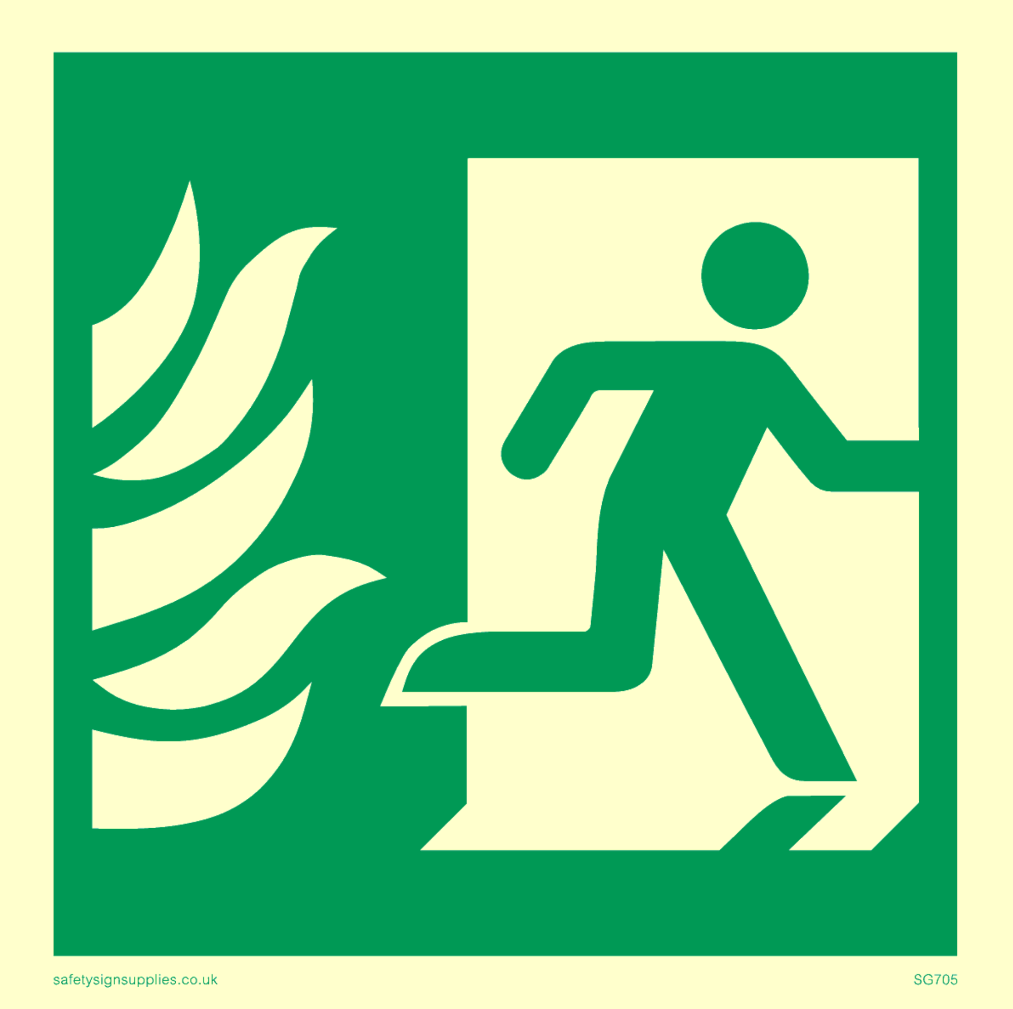 Symbol only signs have only a symbol and no text. Fire exit signs or Emergency exit signs indicate the direction of the exit in the event of a fire or emergency requiring evacuation of a building. NHS fire exit signs are designed to meet the HTM65 Signs guide 2 for NHS estates.