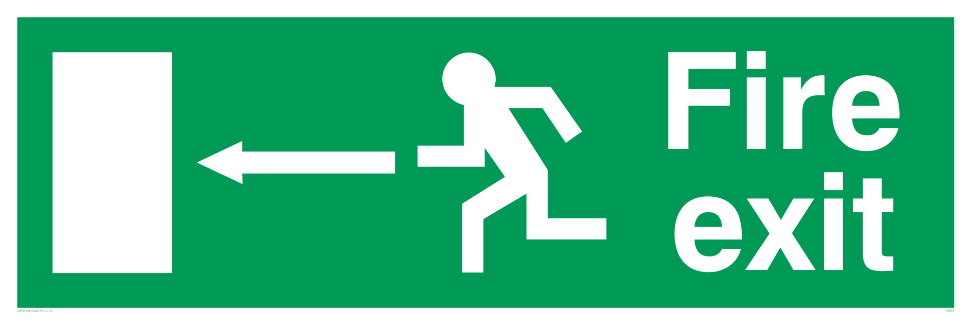 Fire exit signs or Emergency exit signs indicate the direction of the exit in the event of a fire or emergency requiring evacuation of a building. 92/58 EEC signs are designed to meet the applicable European Community standard, normally relating to fire exit signs.