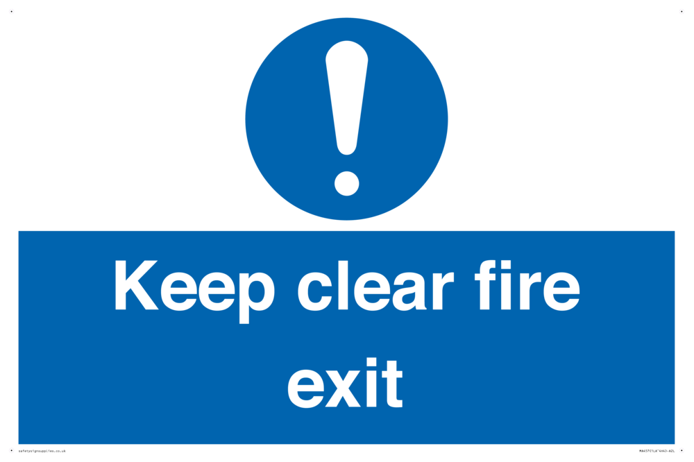 Sign Text: Keep clear fire exit