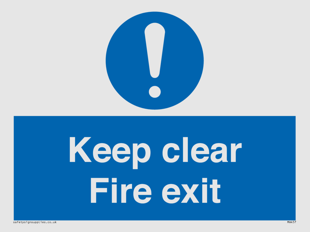 This sign contains a general Mandatory Exclamation Symbol - exclamation mark in white on blue circle background.