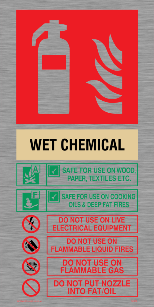 Fire Extinguisher Signs indicate the location and type of fire extinguishers present and give instructions for use. This sign is small.