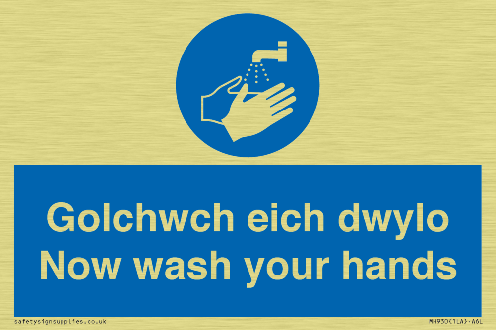 Sign Text: Golchwch eich dwylo / now wash your hands