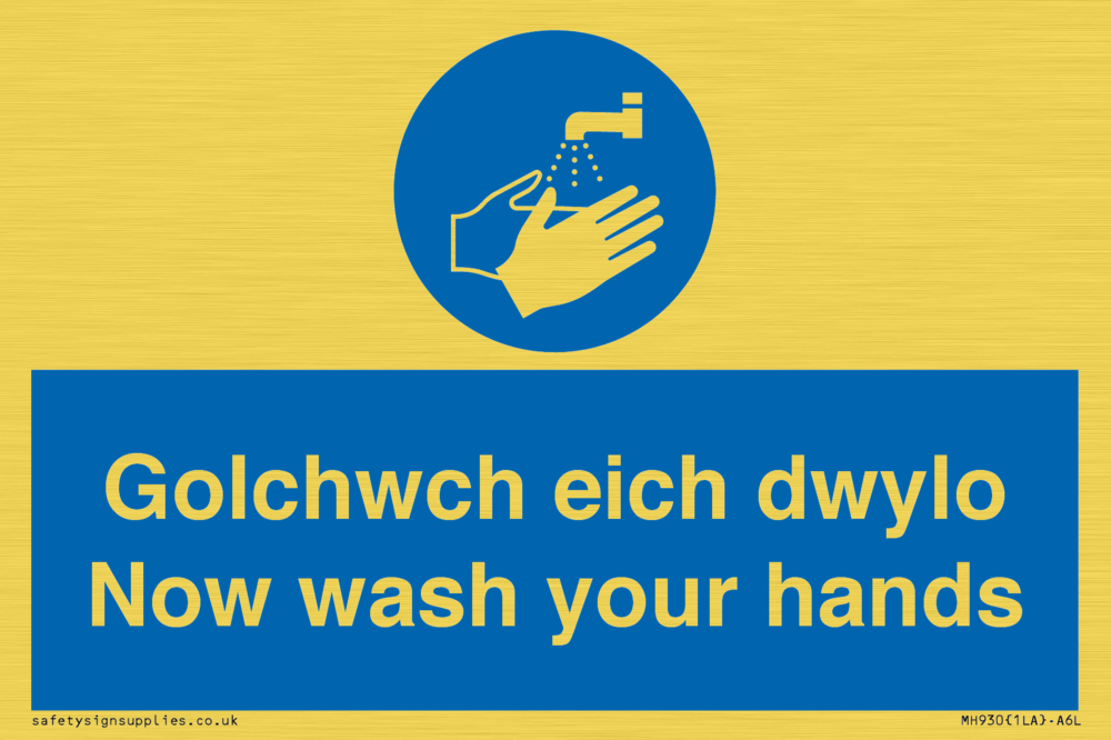 Sign Text: Golchwch eich dwylo / now wash your hands