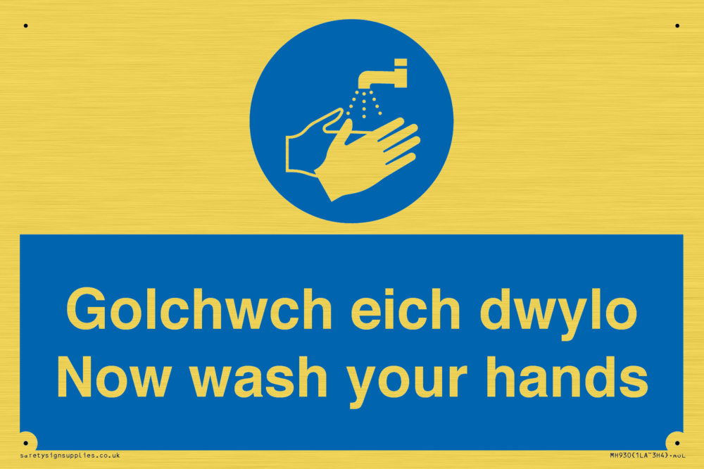 Sign Text: Golchwch eich dwylo / now wash your hands