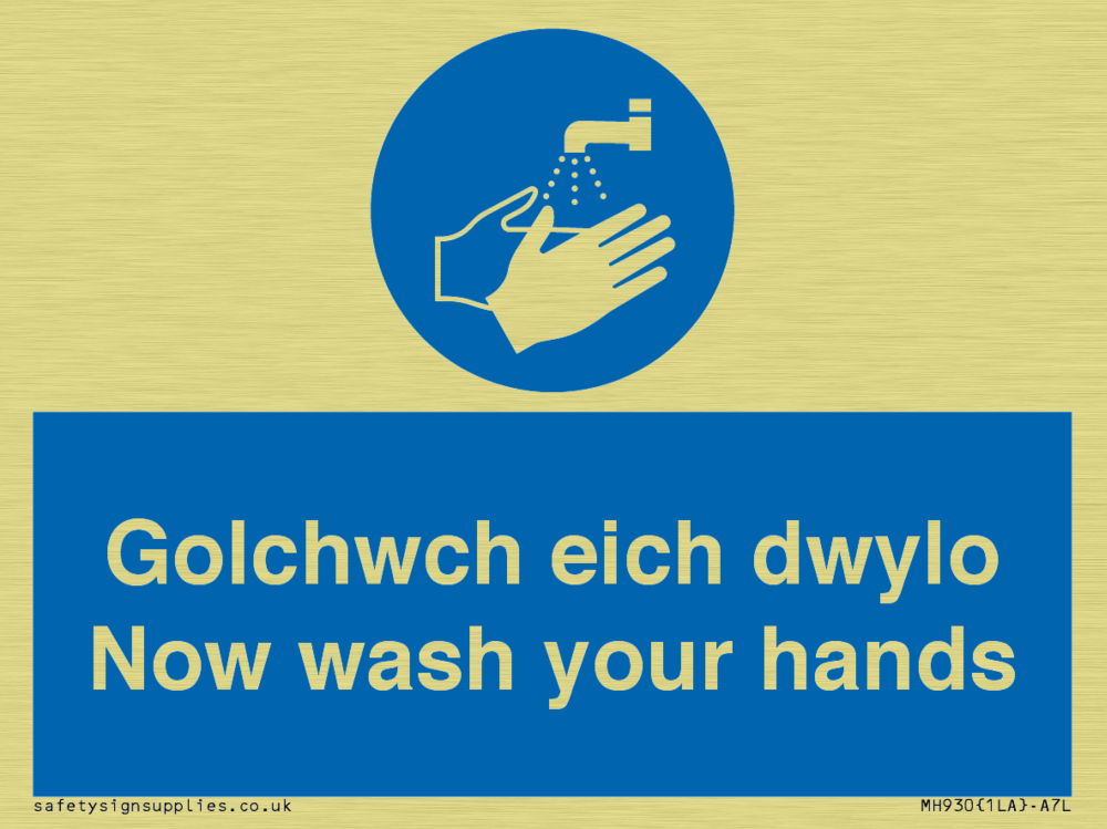 Sign Text: Golchwch eich dwylo / now wash your hands