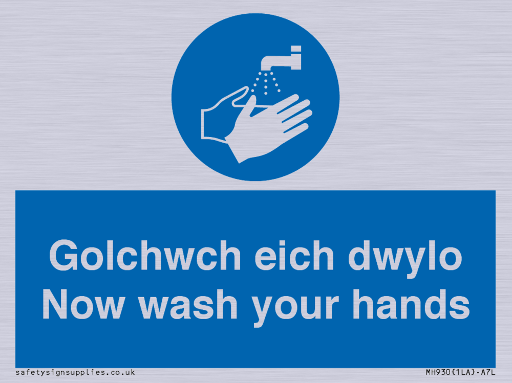 Sign Text: Golchwch eich dwylo / now wash your hands