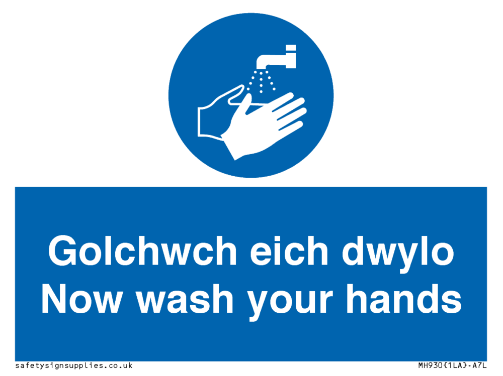 Sign Text: Golchwch eich dwylo / now wash your hands