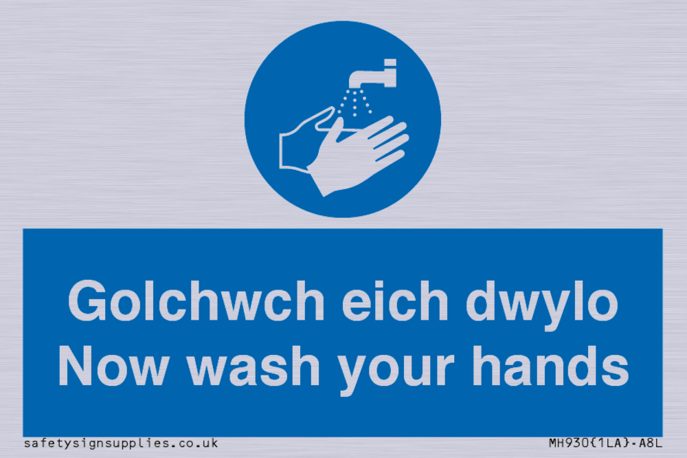 Sign Text: Golchwch eich dwylo / now wash your hands