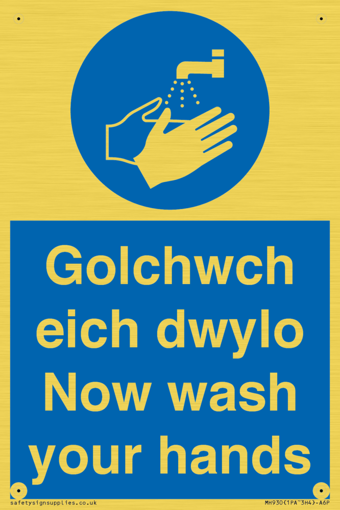 Sign Text: Golchwch eich dwylo / now wash your hands