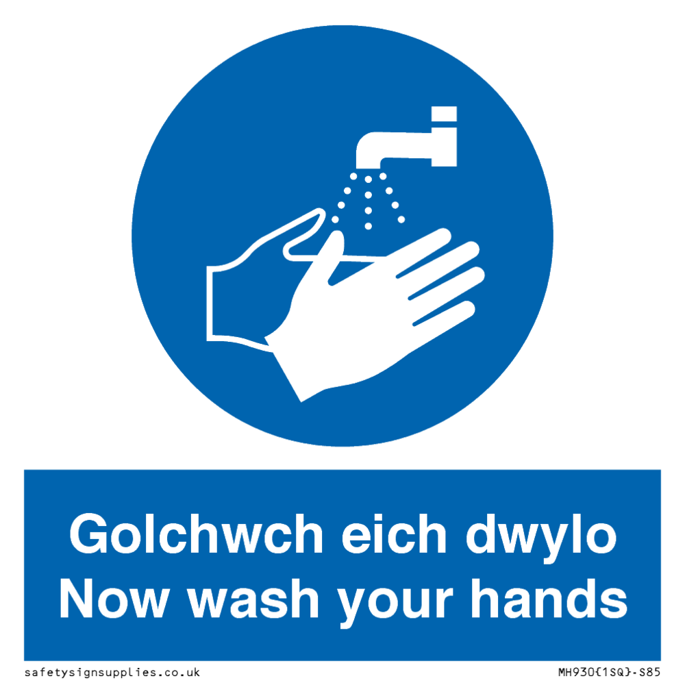 Sign Text: Golchwch eich dwylo / now wash your hands