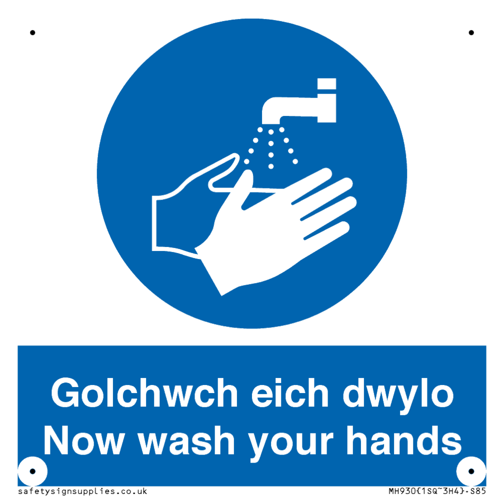 Sign Text: Golchwch eich dwylo / now wash your hands