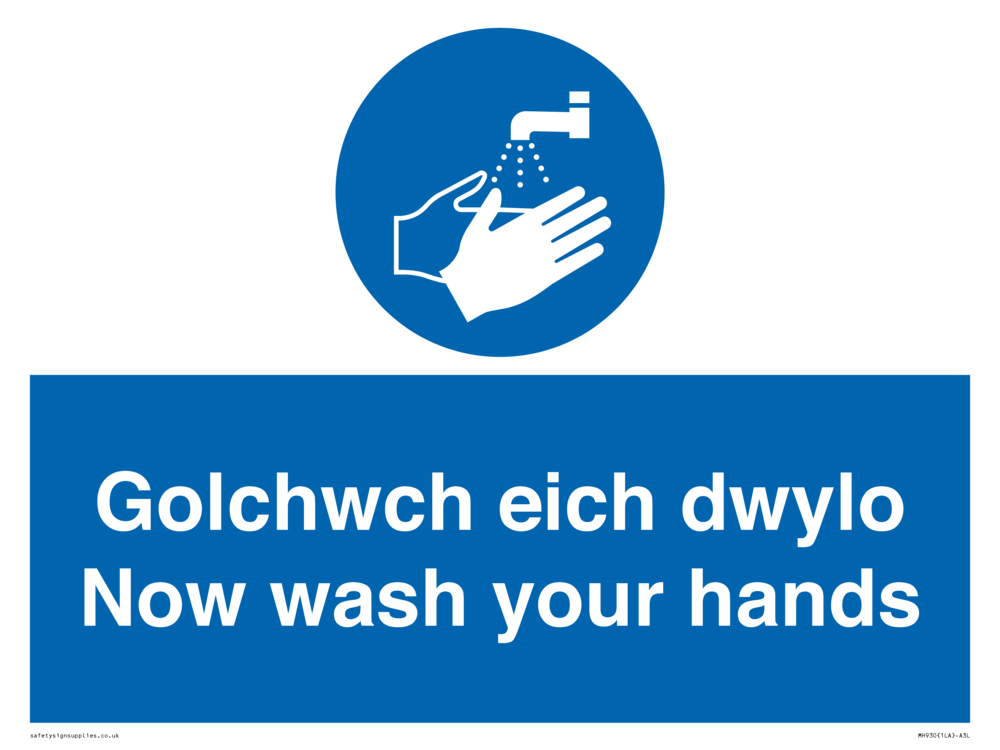 Sign Text: Golchwch eich dwylo / now wash your hands