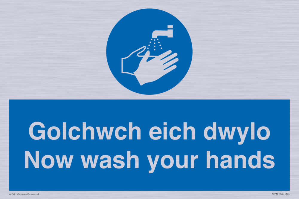 Sign Text: Golchwch eich dwylo / now wash your hands
