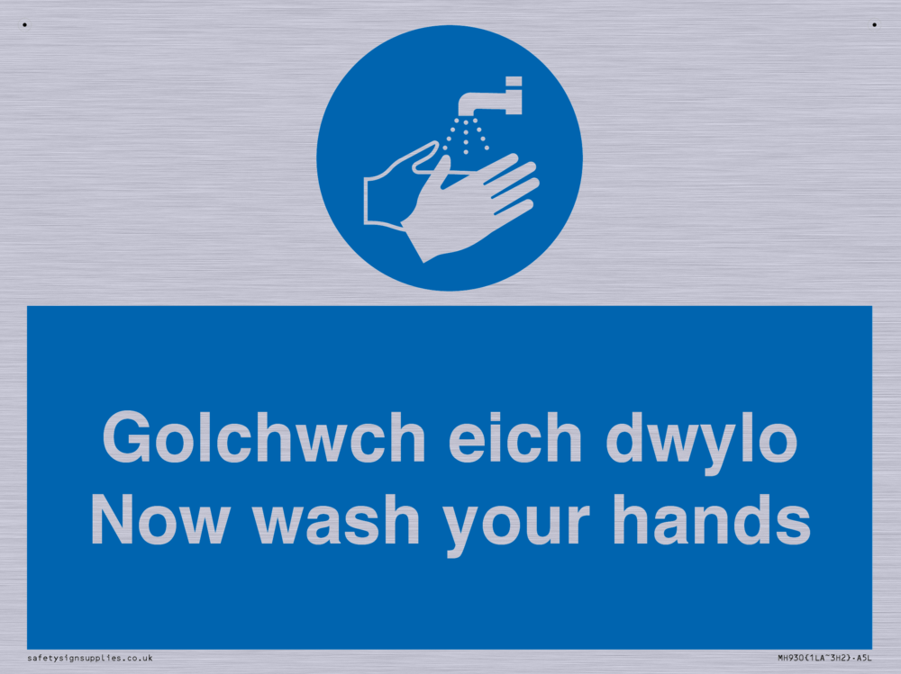 Sign Text: Golchwch eich dwylo / now wash your hands