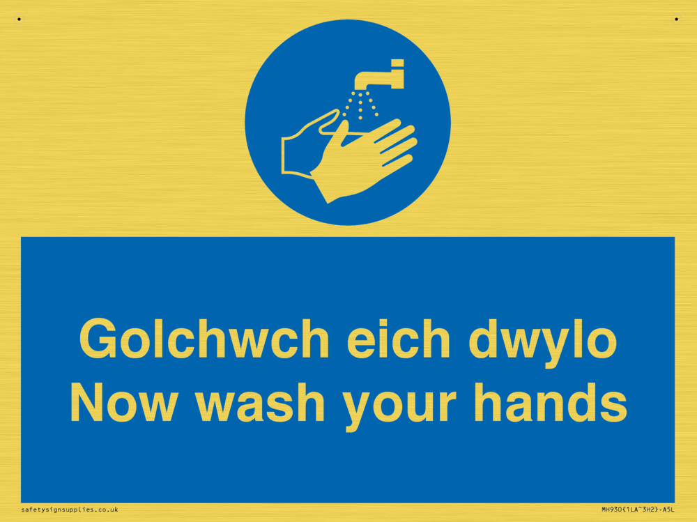 Sign Text: Golchwch eich dwylo / now wash your hands
