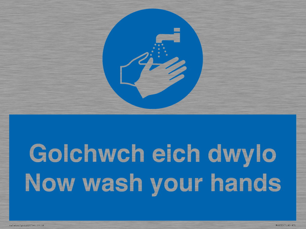 Sign Text: Golchwch eich dwylo / now wash your hands