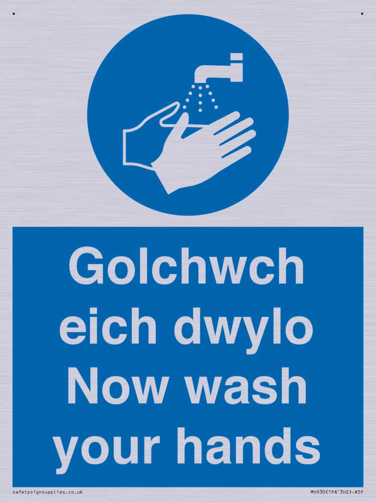 Sign Text: Golchwch eich dwylo / now wash your hands