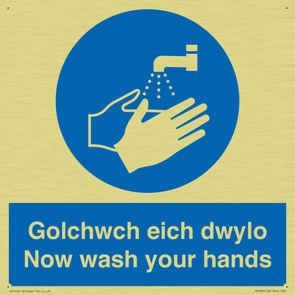 Sign Text: Golchwch eich dwylo / now wash your hands