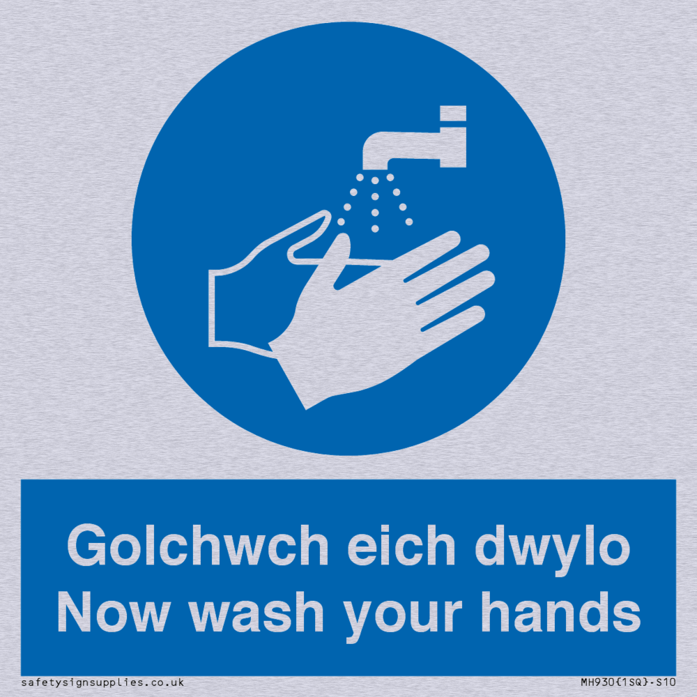 Sign Text: Golchwch eich dwylo / now wash your hands
