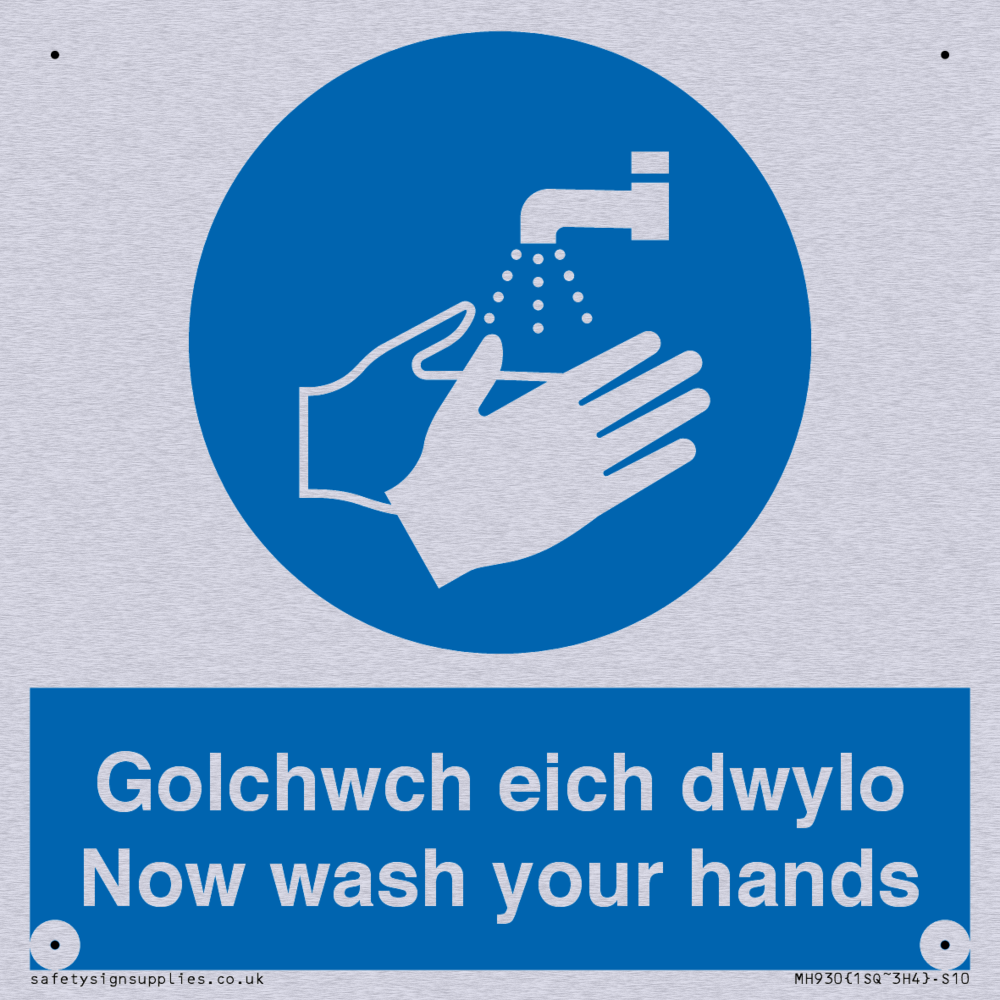 Sign Text: Golchwch eich dwylo / now wash your hands