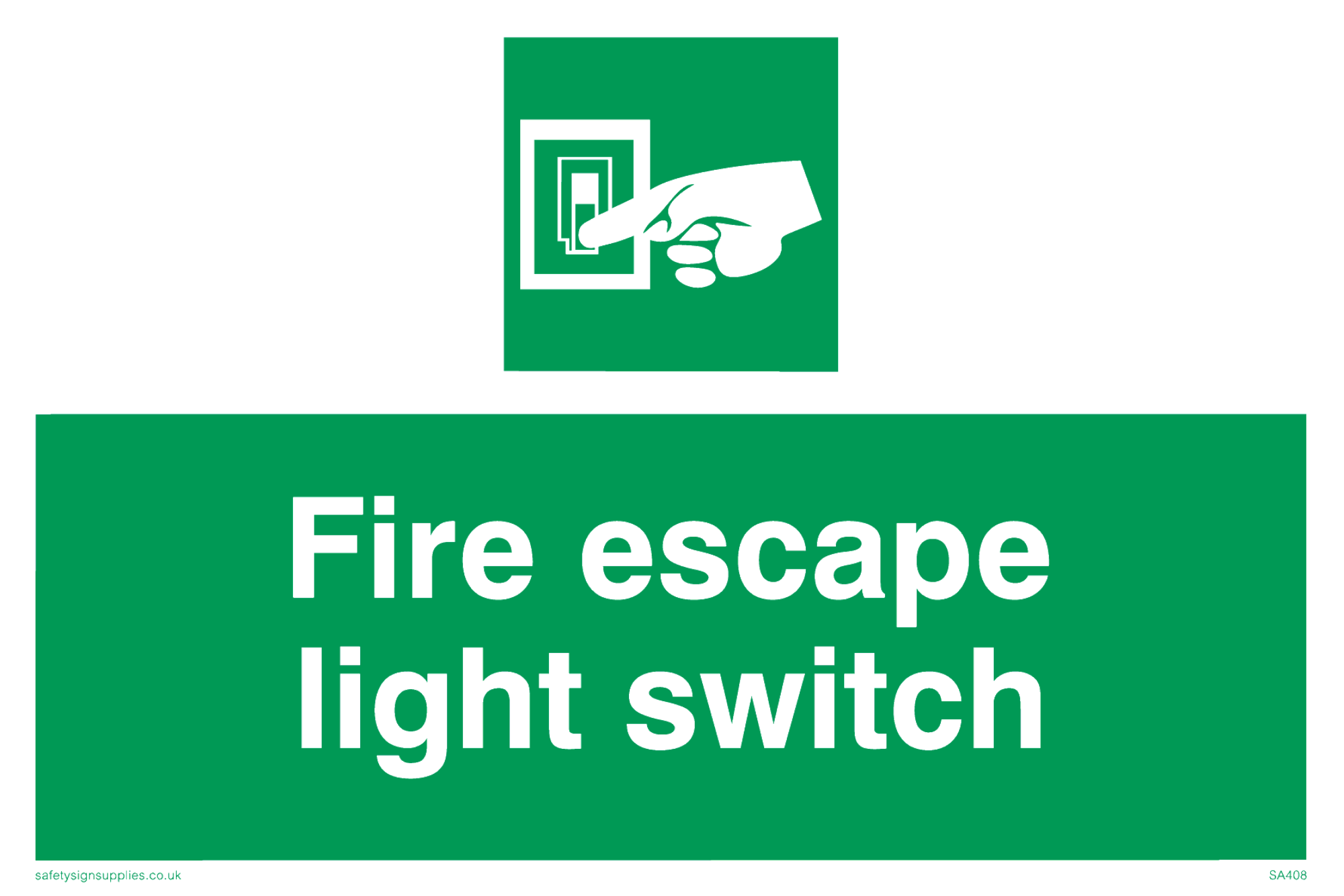 This sign contains the green symbol of a finger flicking a switch to make something safe.
