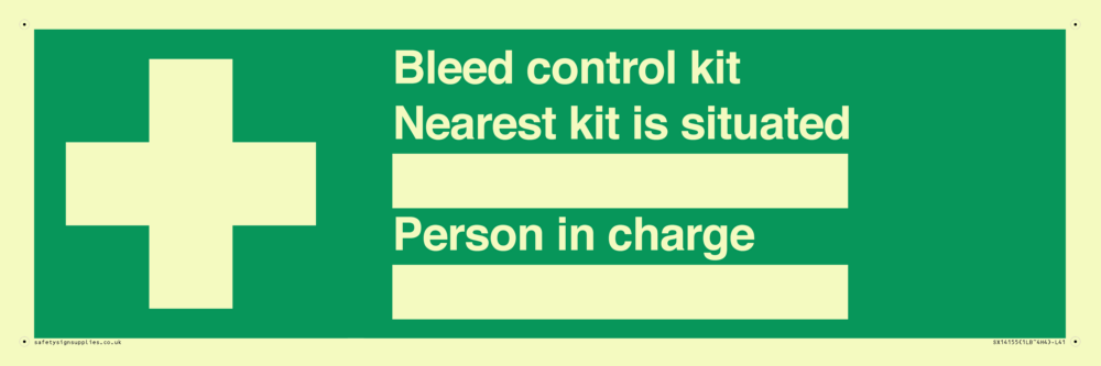 Sign Text: Bleed control kit Nearest kit is situated ██████ Person in charge ██████