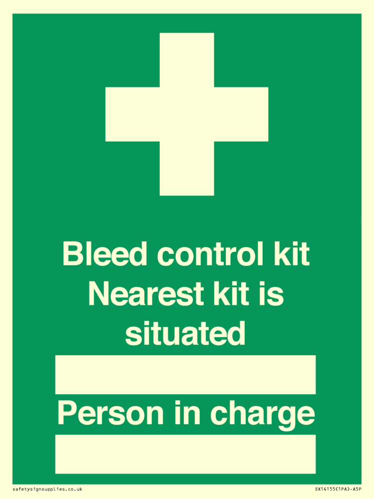 Sign Text: Bleed control kit Nearest kit is situated ██████ Person in charge ██████