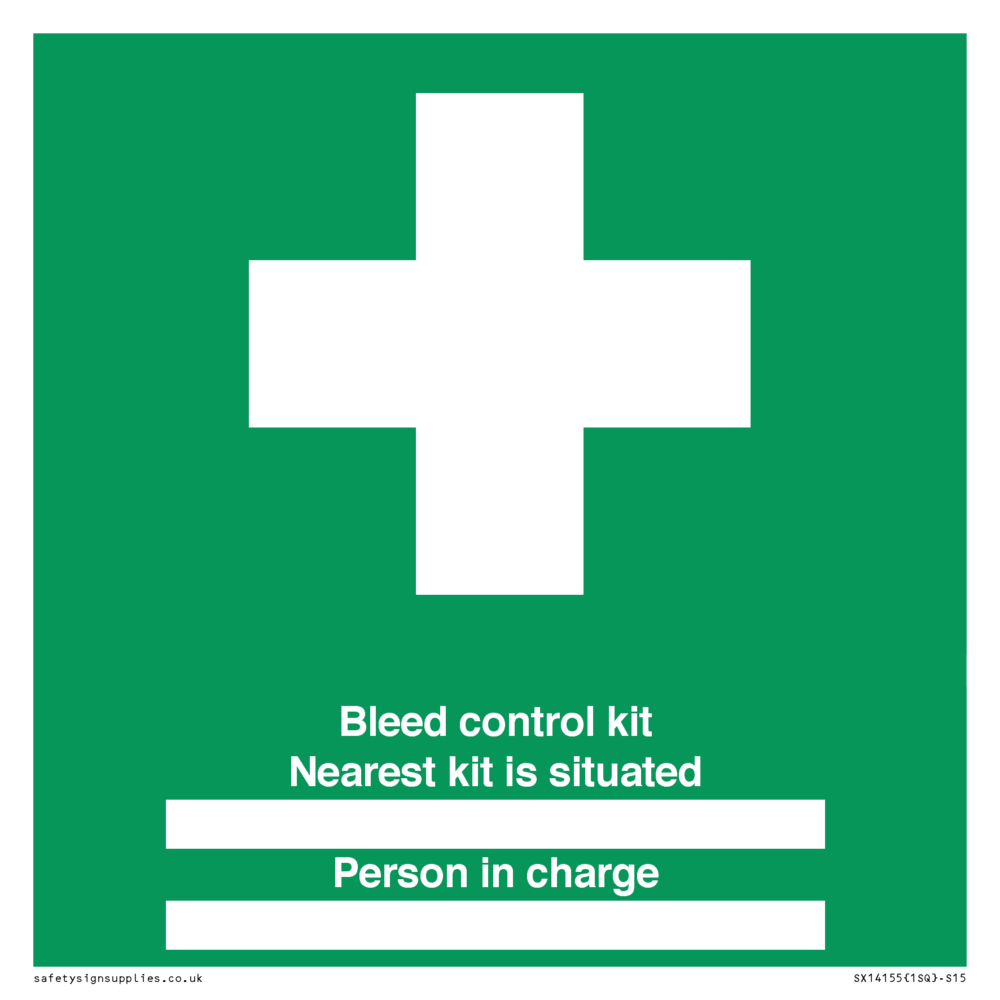 Sign Text: Bleed control kit Nearest kit is situated ██████ Person in charge ██████