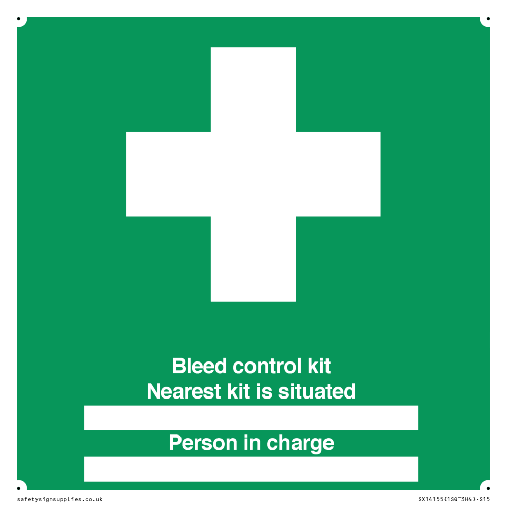 Sign Text: Bleed control kit Nearest kit is situated ██████ Person in charge ██████