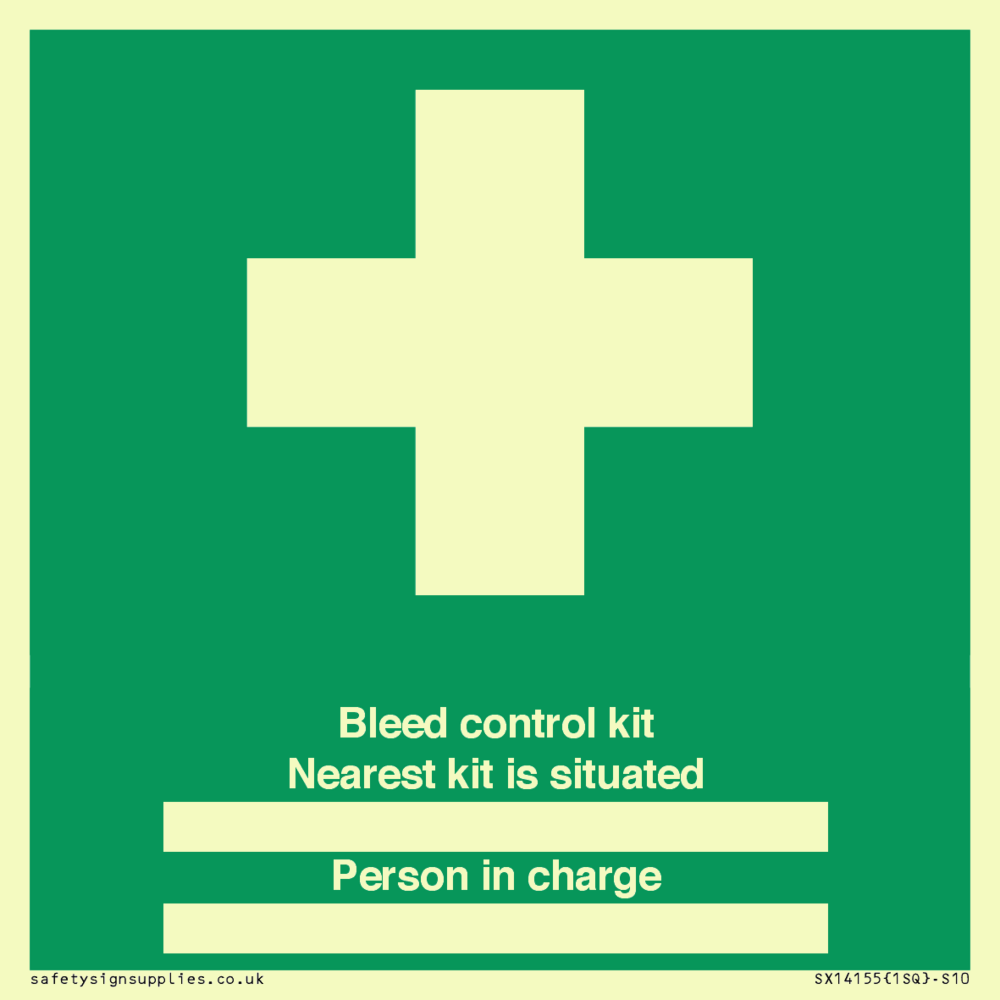 Sign Text: Bleed control kit Nearest kit is situated ██████ Person in charge ██████