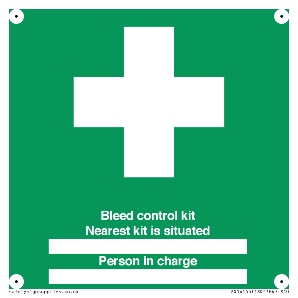Sign Text: Bleed control kit Nearest kit is situated ██████ Person in charge ██████