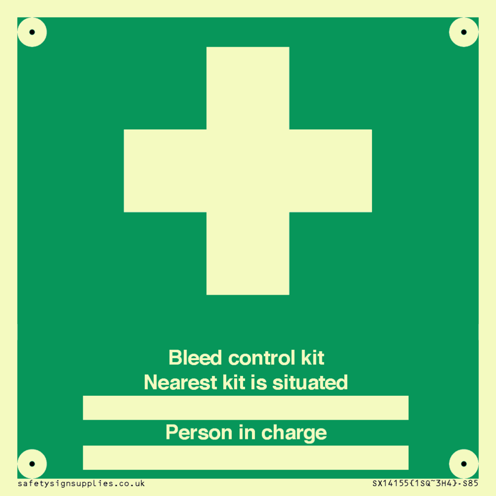 Sign Text: Bleed control kit Nearest kit is situated ██████ Person in charge ██████