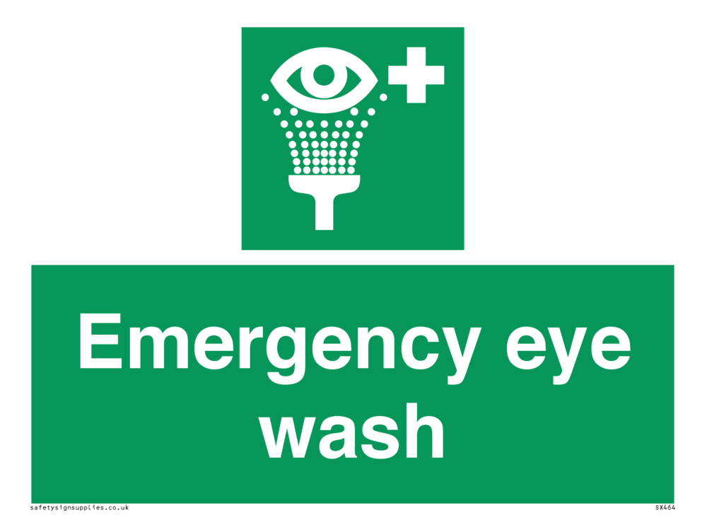 Image content: Eye above running water coming out of a shower head, first aid cross.