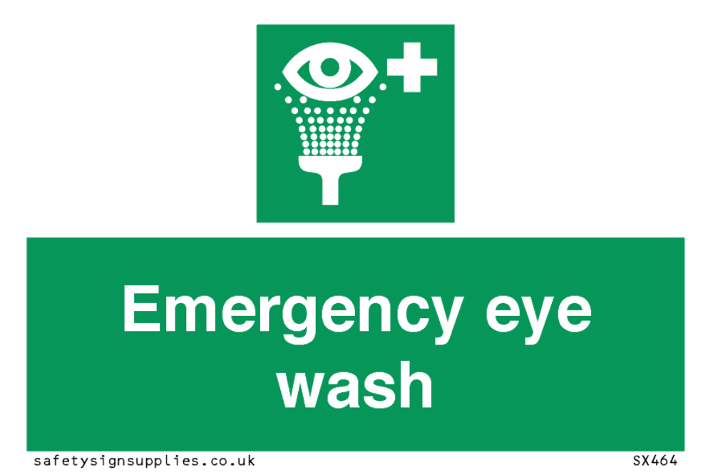 Image content: Eye above running water coming out of a shower head, first aid cross.