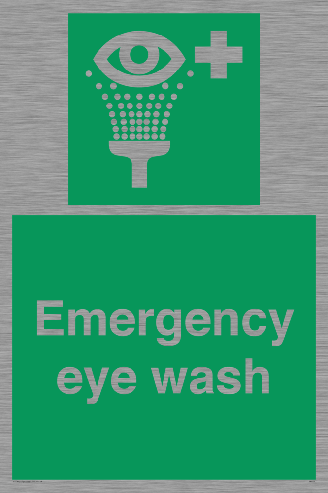 Image content: Eye above running water coming out of a shower head, first aid cross.
