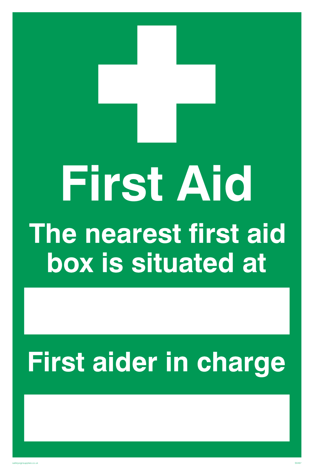 First Aid signs indicate the measures, means or personnel to give first aid in the event of an accident or injury. This sign is medium sized. This sign is approximately equivalent to A4 paper size.