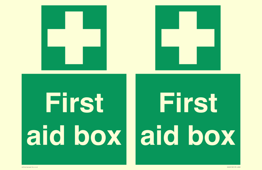 Sign Text: FIrst aid box